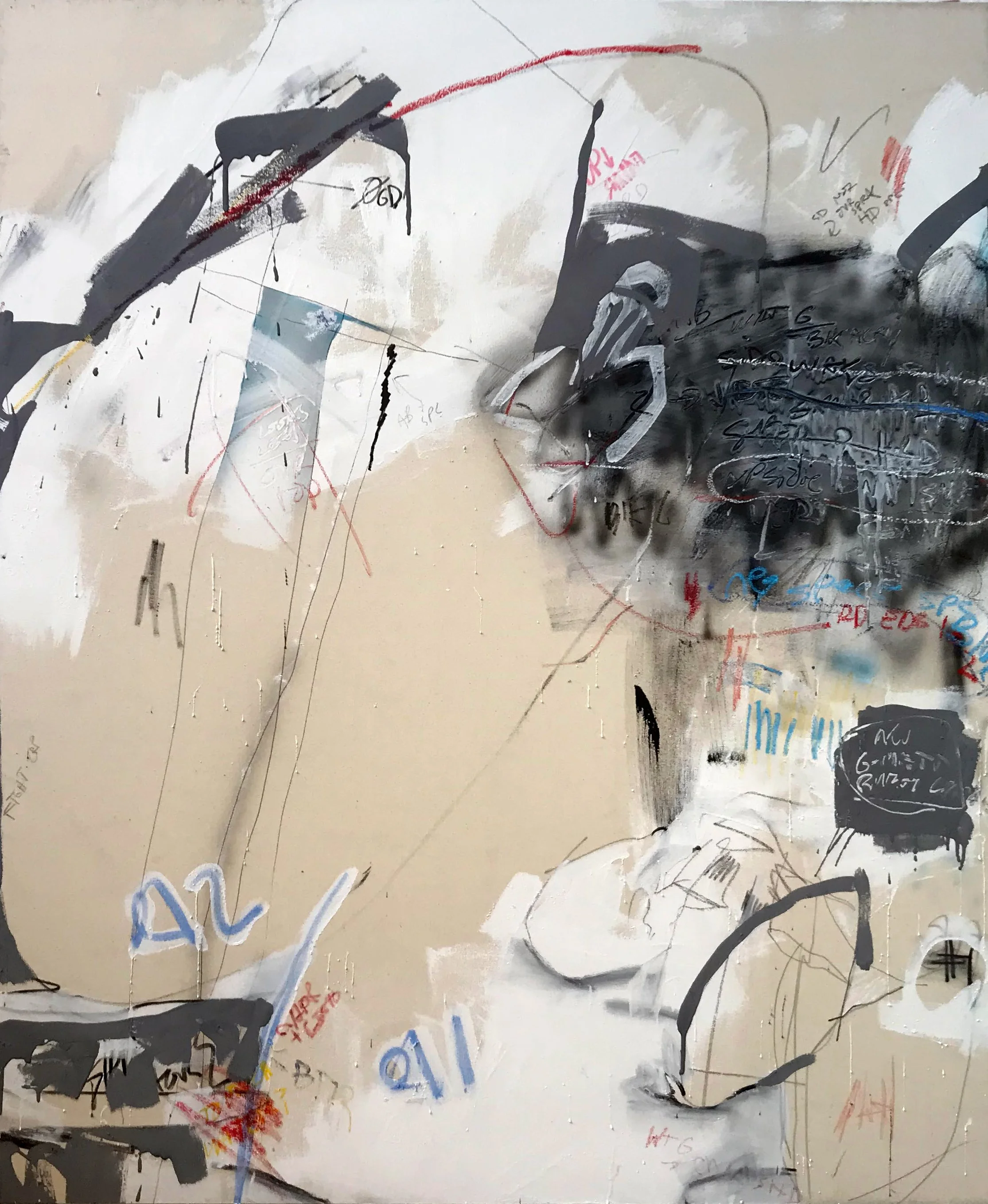 "10pk and Twist" 50 x 60 x 2" Mixed Media on Canvas. 2019