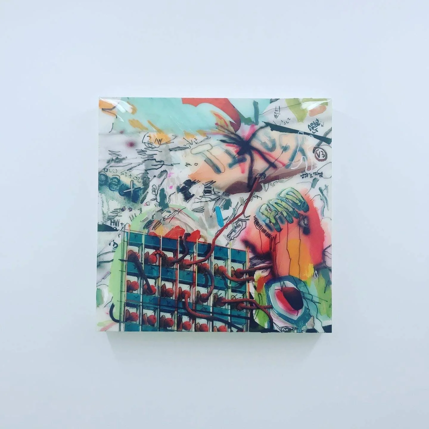 "Continue to Re-Run" 24 x 24 x 2" Mixed Media on Panel 2023