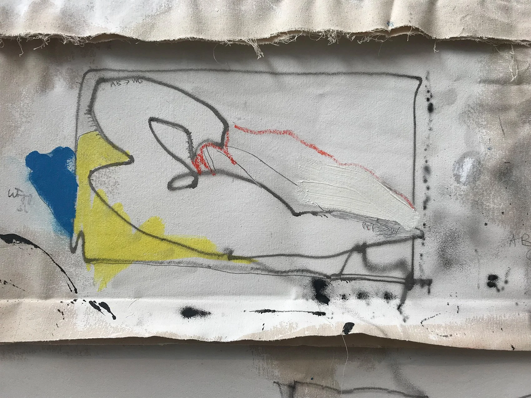 “Untitled Series” Each piece begins with an embryonic sketch, created with Crayola markers chosen for their water-soluble properties. These initial marks, urgent yet intentional, evoke a sense of fragility, much like the ephemeral quality of Michael Krebber's work, as if they might blow away with the wind. Water and brush are then introduced to soften and blend the lines, transforming the sketch into something akin to a watercolor painting.